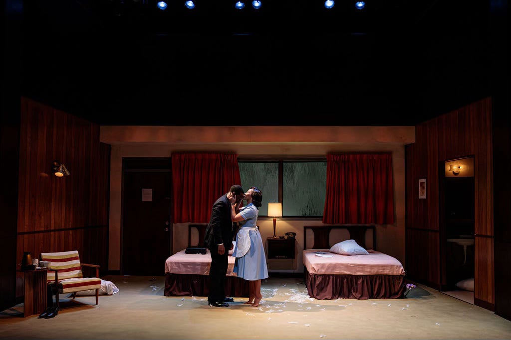 That steadiness comes not only from Mr. Parent’s hand, but from the two actors at the play’s center, who don’t perform the play so much as channel it, with a power that borders on the miraculous. What emerges is a dynamic that flickers from earthly banter to cosmic revelation, charged with an undertow of desire and a surprising tenderness. Here, those dynamics are wielded by Dominic Carter and Kiera Prusmack, actors of such rare voltage that the play crackles like a live wire, volatile and dazzlingly alive. (It helps that the production is realized with scrupulous care: a dingy motel room, lighting that shifts from the mundane to the metaphysical, and a soundscape that conjures not only the storm outside but the unrest beyond the motel walls.)